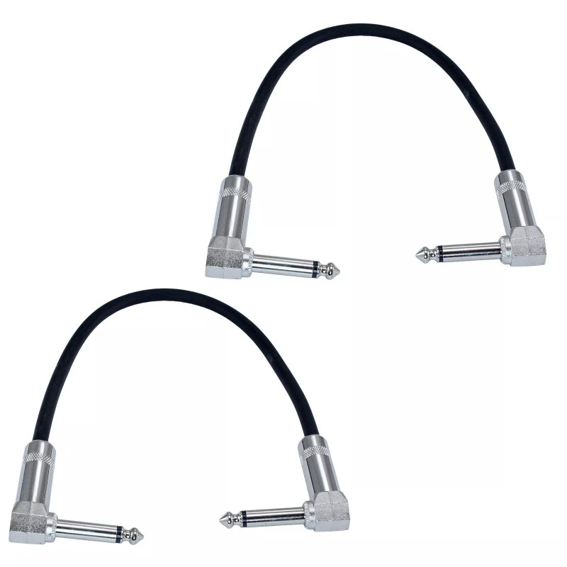 2 pack: Right angle guitar pedal patch cord - 12 inches long - BLACK