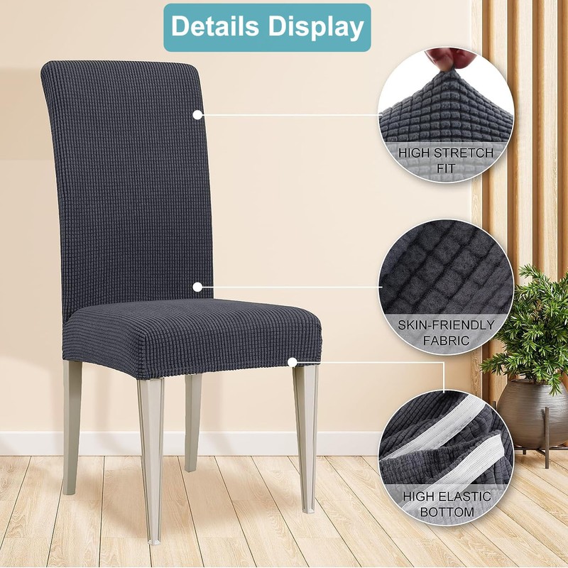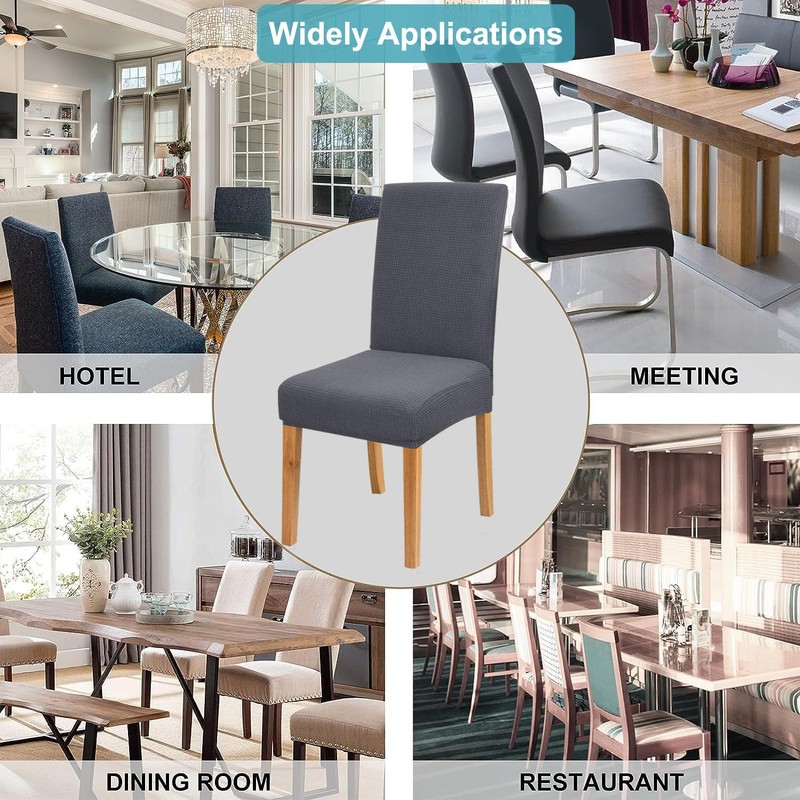 - 💒【Tejido suave】 Las fundas de comedor están hechas de 92% ployester y 8% spandex con un patrón de jacquard de cuadrícula pequeña, simple y elegante, transpirable y sin arrugas. Ajuste seguro con dobladillo cosido altamente elástico, a medida sin nudos ni torceduras.