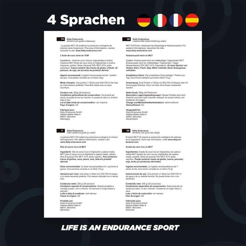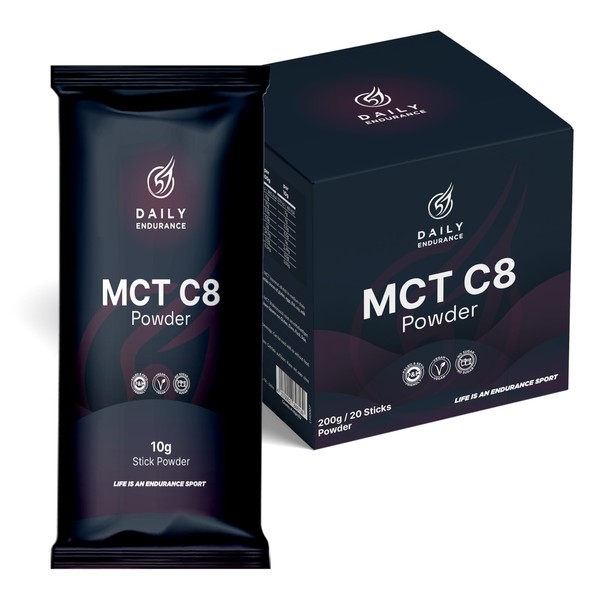 MCT Öl Pulver - Sticks - Ketone & Ketose - MCT Öl C8 - Ballaststoffe - Keine Zusatzstoffe Ohne Zucker - Vegan - 20 Sticks à 10 g - Geschmacksneutral - Daily Endurance