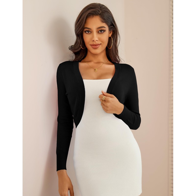 McVanedy Women's Long Sleeve Cropped Cardigan Sweaters Jackets Open Front Shrugs for Dresses Black M