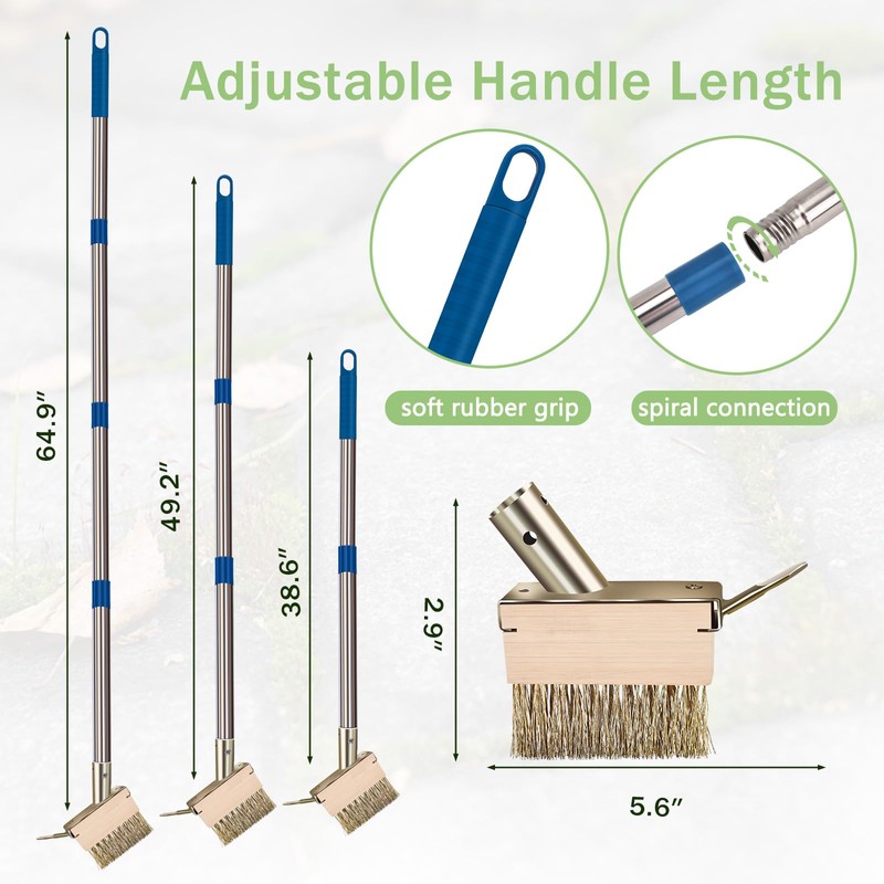 mcwdoit Crack Weeder Tool, Crevice Weeding Moss Brush with 2 Heads&Scraping Hook, A Hand Puller Tool, Moss Remover with Steel Handle for Cleaning Paving Joint Paver Sidewalk Patio Stone Driveway Deck