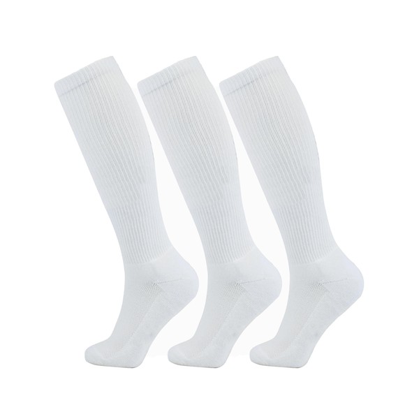 +MD 3 Pairs Compression Socks for Women & Men, 8-15mmHg Moisture Wicking Support Stockings for Airplane Flights, Travel, Nurses, Edema 10-13 White