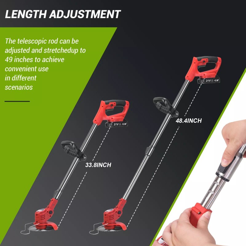 - ADJUSTABLE LENGTH FOR COMFORT: Featuring a telescopic pole that extends from 33 to 49 inches, this battery-powered weeder adapts to various heights, ensuring ergonomic comfort and reducing strain during operation.