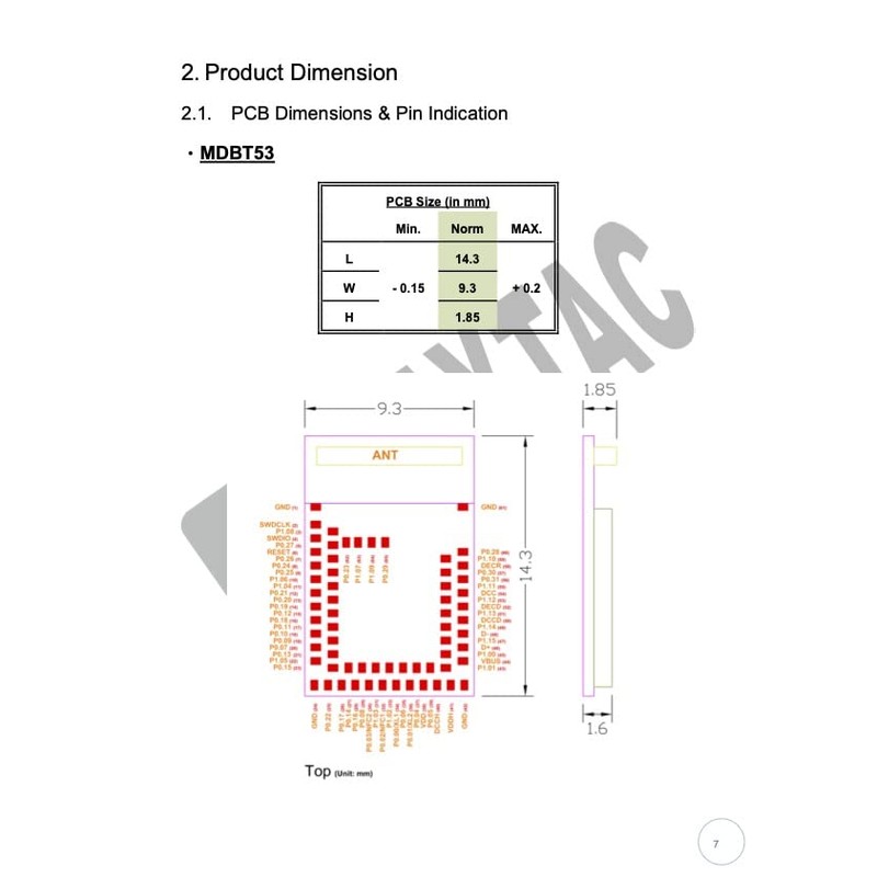 • Raytac Part No.: MDBT53-1M