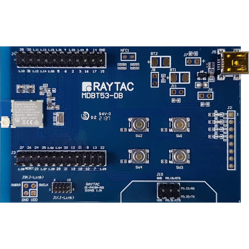- Find article "How To Get started with Nordic nRF5340 Project by Raytac MDBT53/MDBT53V Development Kit Demo Board“ for hardware setup