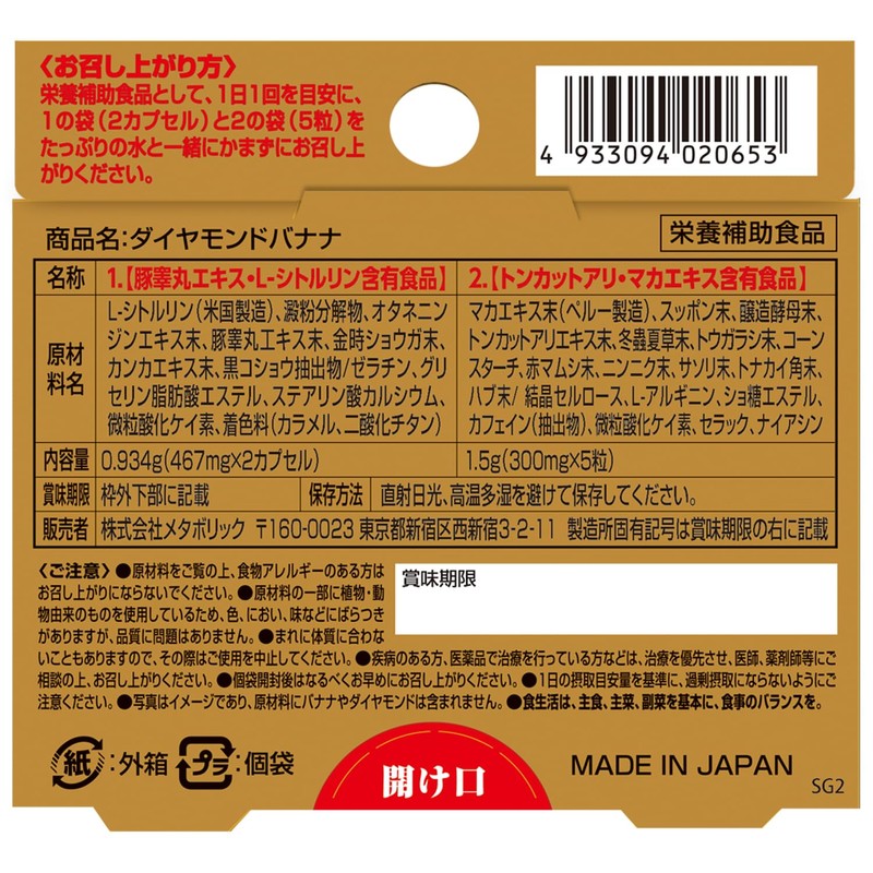 MDCメタボリック ダイヤモンドバナナ (1回分/2カプセル+5粒)活力 ドリンク マカ 亜鉛 アルギニン シトルリン 男性用