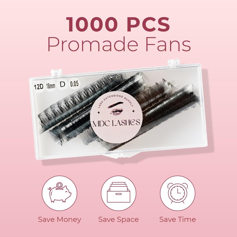 MDC LASHES Promade Eyelash Fans 1000 Fans 5D-20D Premade Volume Lash Extensions C/CC/D Curl 10-18mm Length 0.05/0.07 Thickness Ultra Speed Promade Premade Pre Pro Made False Eyelashes Pestanas