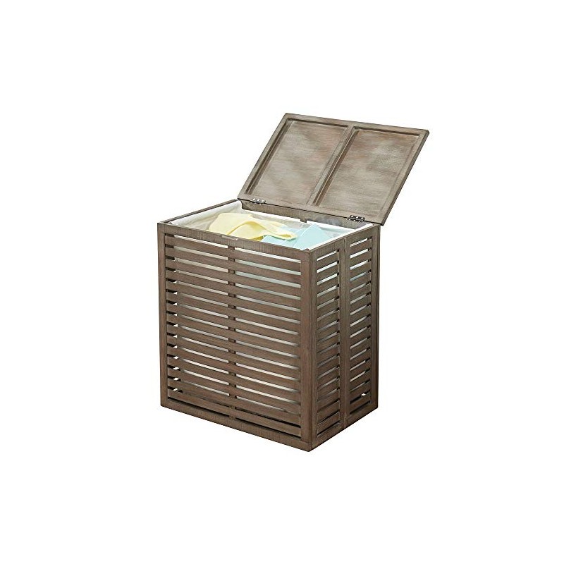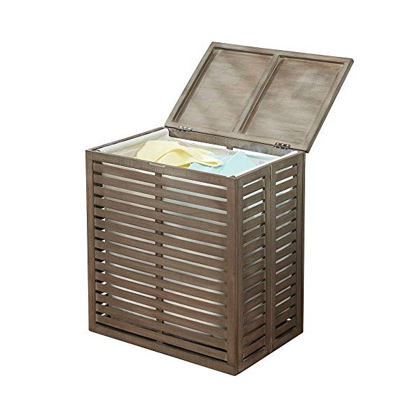 mDesign Bamboo Laundry Hamper Basket with Removable Fabric Liner and Decorative Wood Slats - Portable and Foldable for Compact Storage - Single Hamper Design - Gray Bamboo