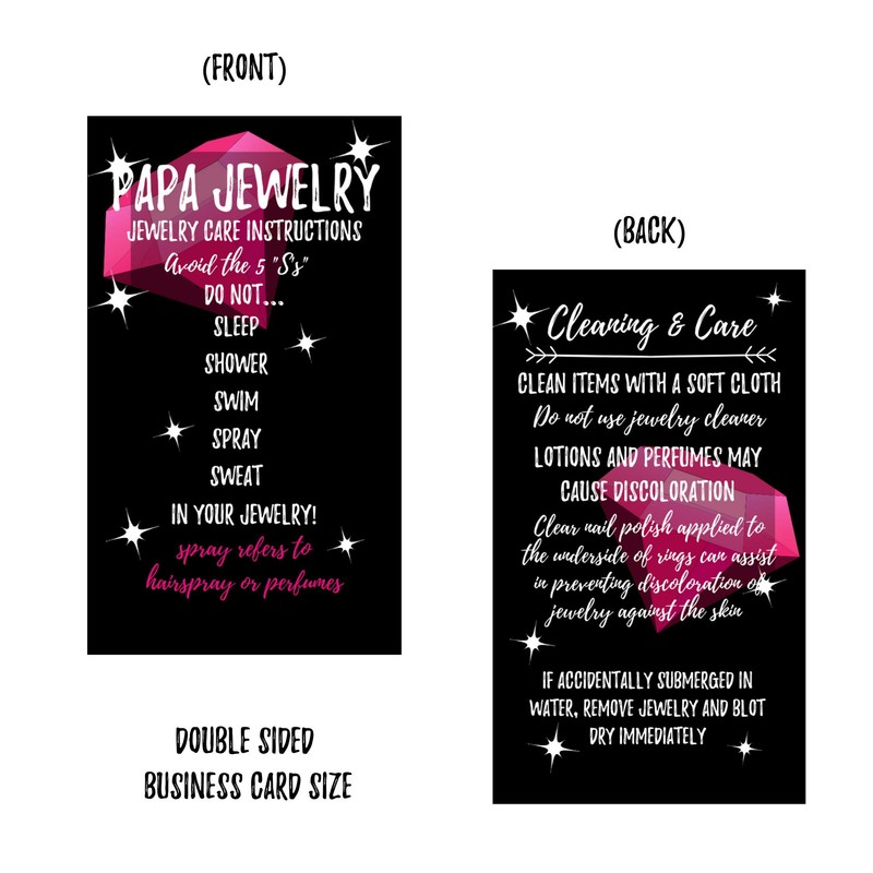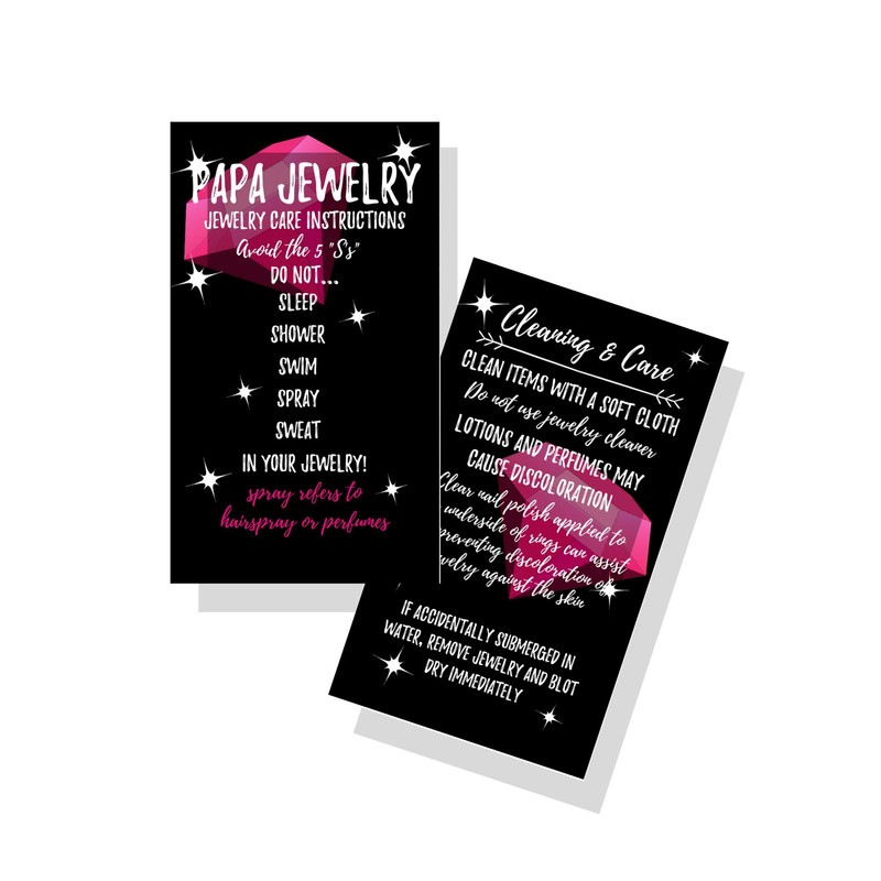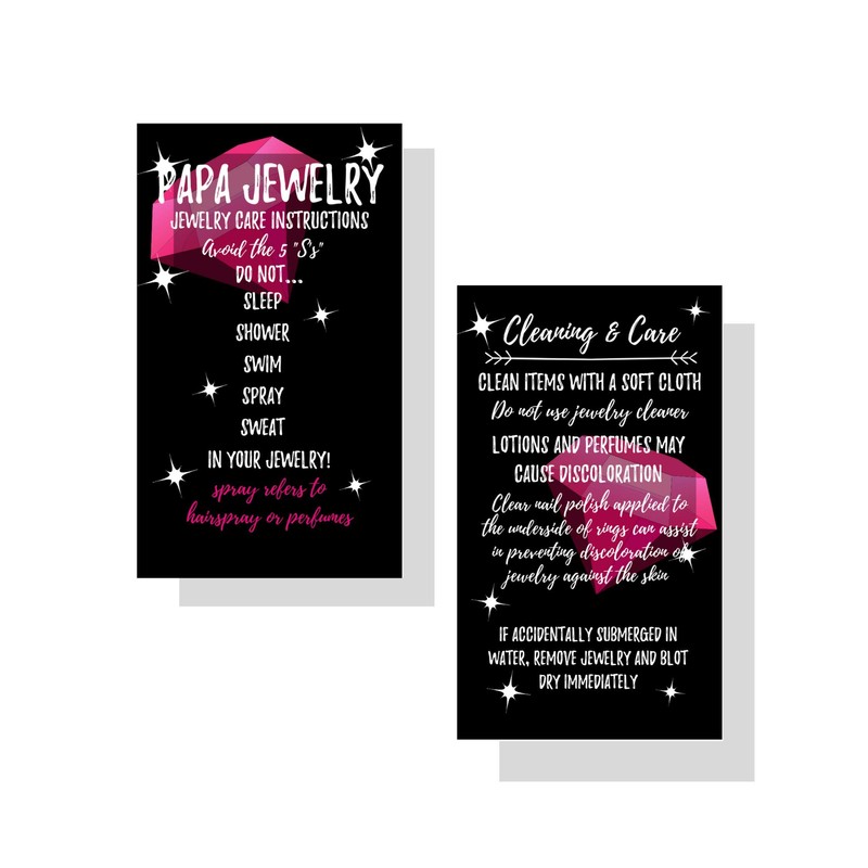 - Jewelry Cleaning and Care papa instructions for your customers to send in the package!