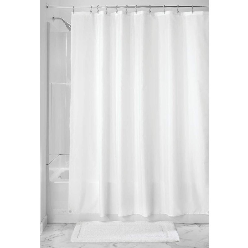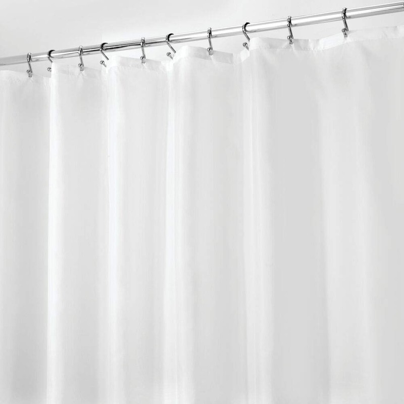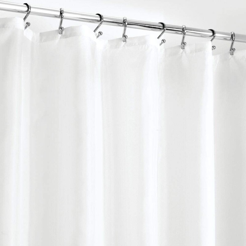- WEIGHTED HEM: The weighted bottom hem keeps the liner in place and reduces billowing; Reinforced top hem makes it easy to install with most types of shower curtain hooks or rings; The high-quality weave gives this curtain liner a soft hand feel and it drapes nicely; Use alone or behind your favorite decorative curtain; Protect your decorative shower curtains and keep them dry