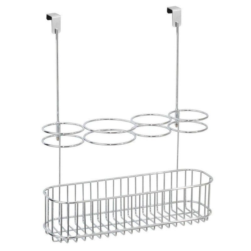 mDesign Metal Over Door Bathroom Hair Care & Styling Tool Organizer Storage Basket for Hair Dryer, Flat Irons, Curling Wands, Hair Straighteners - Hang Inside / Outside Cabinet Doors - Chrome