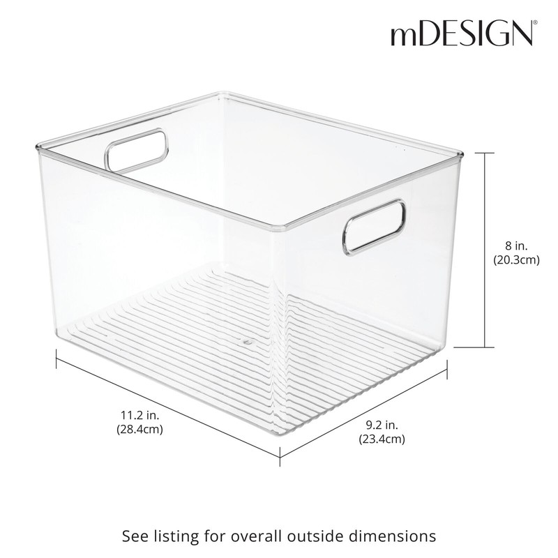 - PORTABLE: Bins feature easy-carry handles to make it simple to transport goods from pantry to shelf to table; Just grab and go; The perfect storage and organizing solution for modern kitchens and pantries; Open tops and clear construction makes it easy to see what is inside and quickly grab what you need; Try these in the cabinet or cupboard under your sink for cleaning or dishwashing supplies or for storing boxes of kitchen liners and large garbage bags
