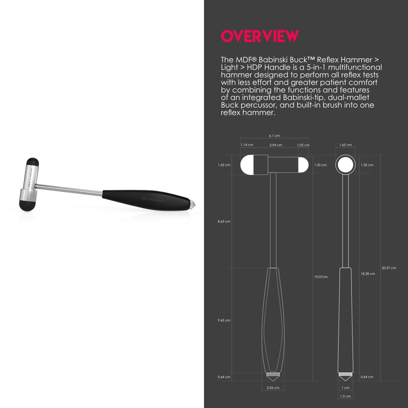 MDF Babinski Buck® Neurological Reflex Hammer with built-in brush for cutaneous and superficial responses - Light - HDP Handle - Black (MDF515PBT-11)