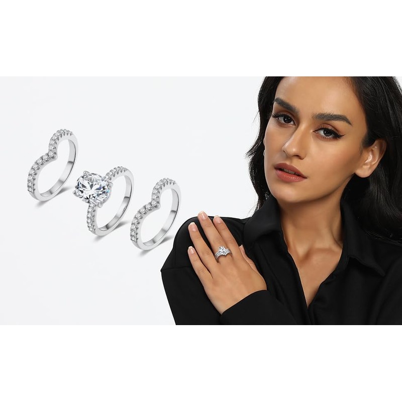 - Oval Ring Centerpiece: This three-in-one set features a stunning oval ring adorned with AAAAA-grade cubic zirconia, exuding sophistication and grace, perfectly complemented by its 18K white gold plating.
