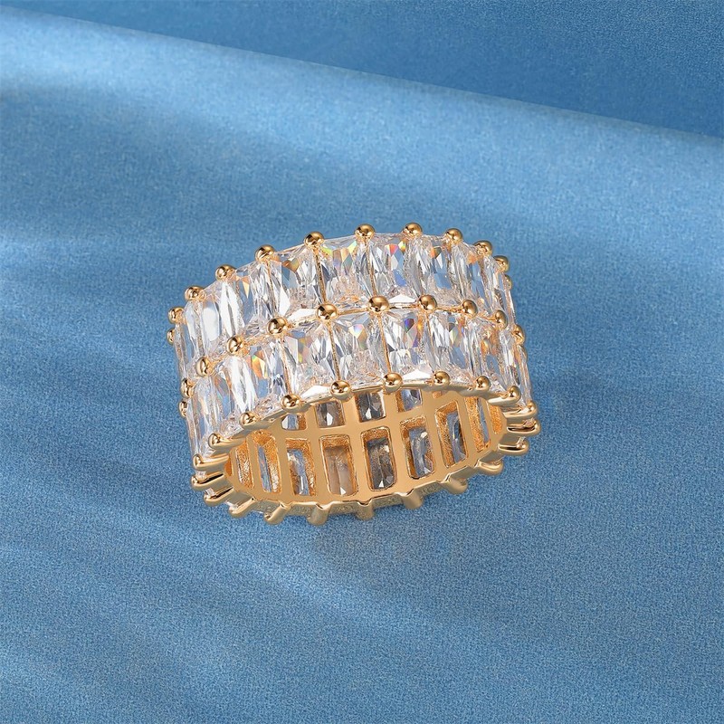 MDFUN 2 Rows Baguette Ring Eternity Bands Emerald Cut Cubic Zirconia Ring 18K Yellow Gold Plated Engagement Promise Wedding Rings for Women Size 8.5