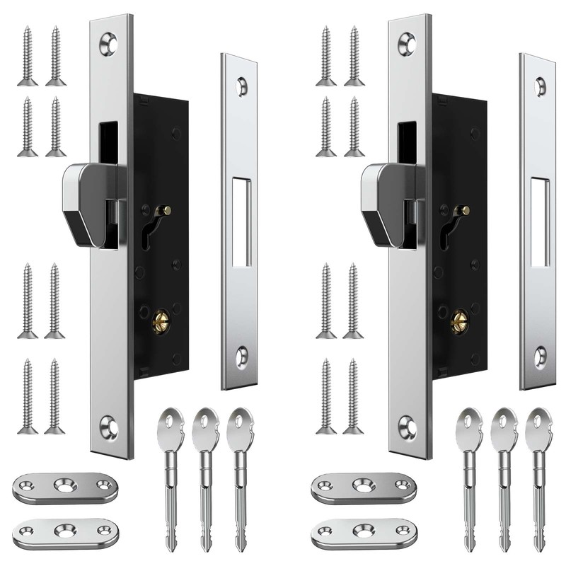 Mdkave Hidden Mortise Lock,Mortise Lock Replacement Parts,Pocket Door Locks,Sliding Door Lock with Keys,No Handle,Suitable for Sliding, Pocket and Swing Doors(Sliding Door Lock,2 Pack)