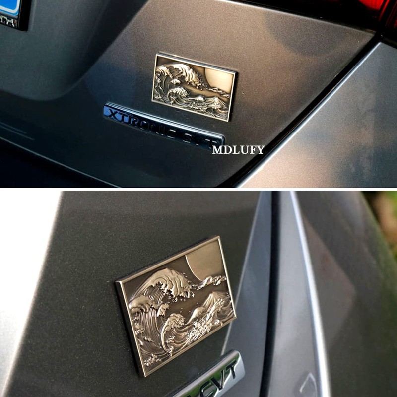 MDLUFY Kanagawa Miura 3D Metal Car Label Ukiyo-e Style Square Car Emblem Motorcycle Car Decorative Emblem