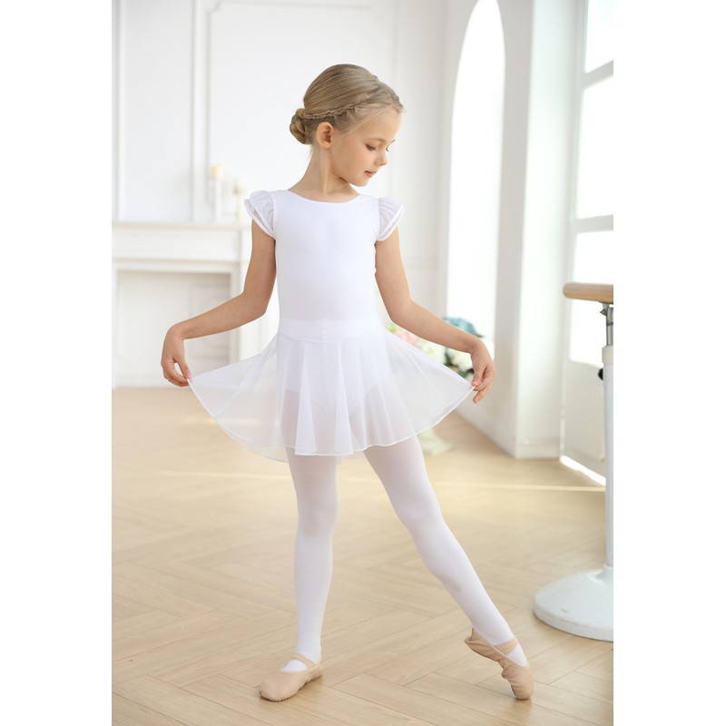 MdnMd Girls' Flutter Sleeve White Dance Ballet Leotard Dress with Tutu Skirt ...