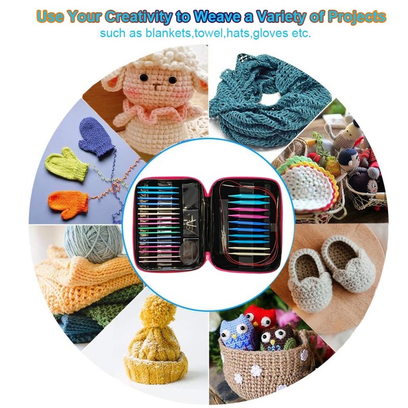 - Premium Quality and Durability: The interchangeable circular knitting needles set is mainly made of high quality aluminum,adopted with hollow design,more lightweight.This needles smooth,durable and comfortable to use.It is more ergonomic and can be continuously woven for a long time.This knitting needle set is a great investment.