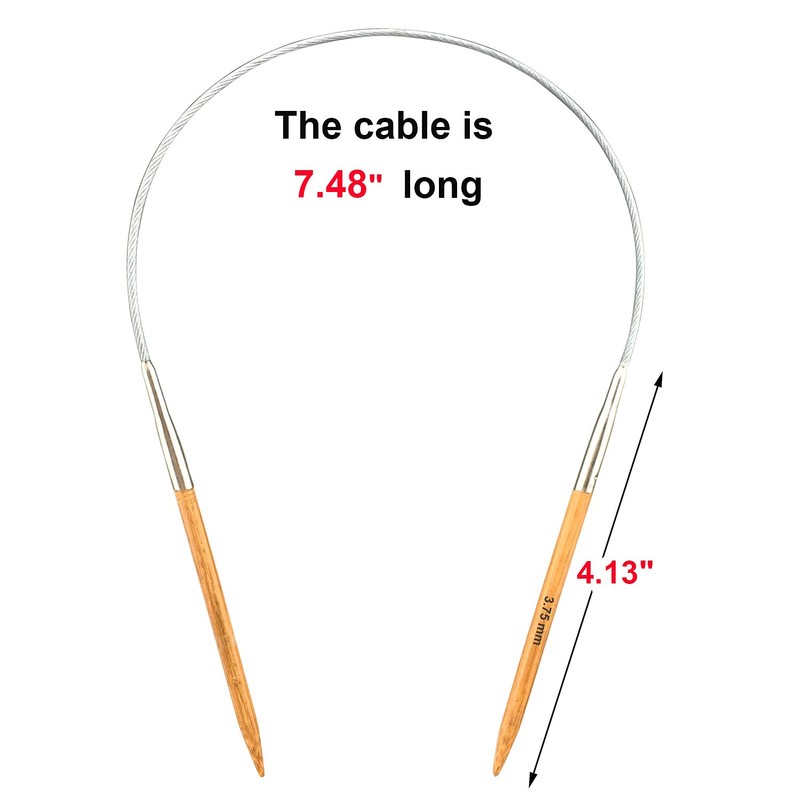 - 1 of 16" (40cm) circular bamboo knitting needles.Each needle tip length is 4.13".The cable length is 7.48".Total length is 16",suitable for small knit projects,like beanies,sleeves,hats,glove.