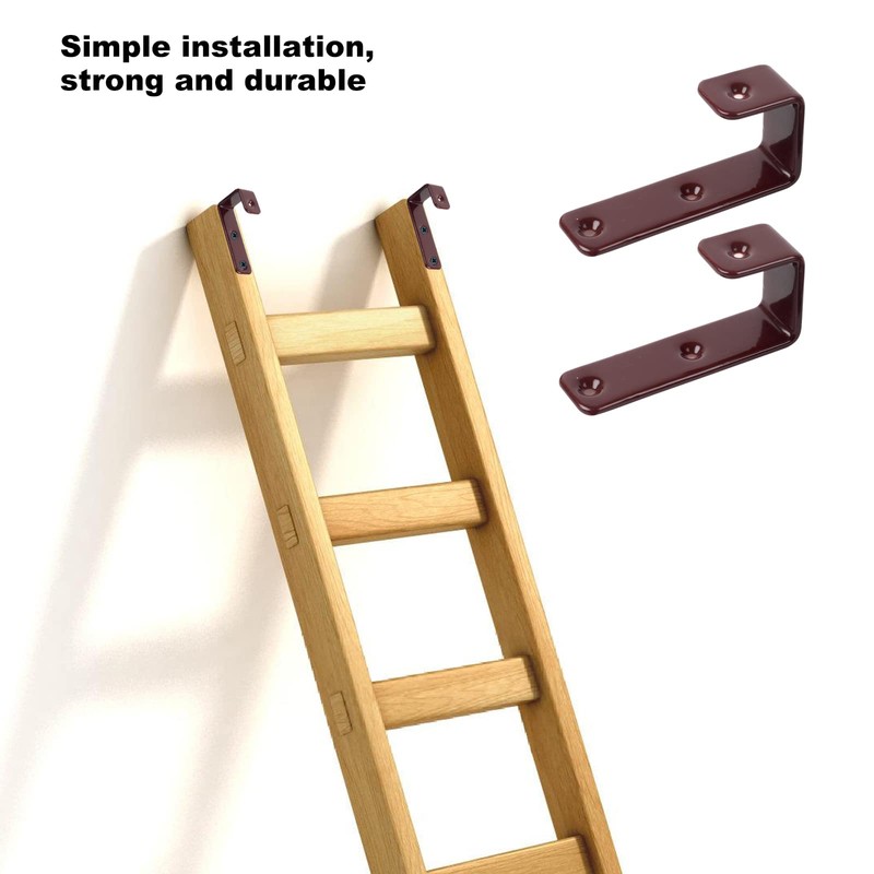 MDPLY 2 Pack Bunk Bed Ladder Hooks, Inside Width 1 inches Brown PVC Coated Kids Bunk Bed J Brackets, Metal Utility Hook Camper/Rv Library Ladder Hardware with 2 Size Screws (Brown)