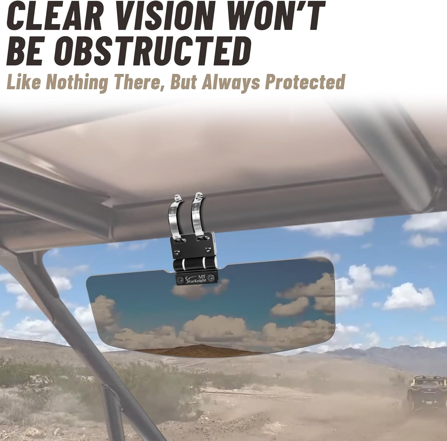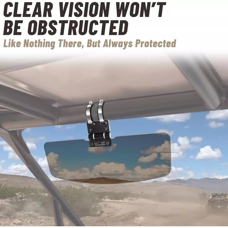 - 【240 Degrees Adjustable Angel】After loosening the screw, the utv sun shade visor can be adjusted by 240 degrees back & forth to get the ideal angel for your driving. When there is no need to use it, you can fold it up and it will not affect your view.