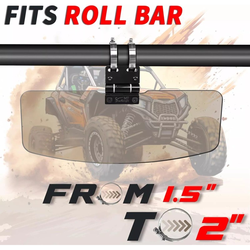 - 【Wide Compatibility】DOES NOT FIT PRO-FIT CAGE. By adjusting the clamps, StarknightMT utv sun visor fits roll bars from 1.5 to 2 inches, it is perfectly compatible with polaris ranger, rzr, general, can am maverick x3/ sport/ trail, commander, defender, cfmoto zforce, uforce, kawasaki mule, teryx, ect.