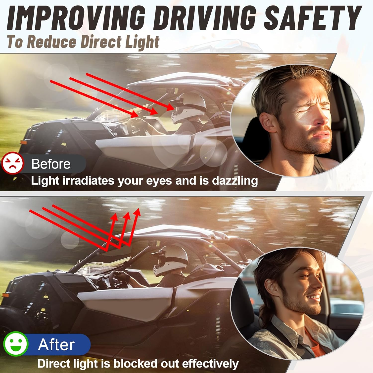 - 【Anti-Glare Sun Visor】The direct light on day or night will be blocked effectively after the rzr sun visor is installed, it not only helps to improve driving safety and comfort greatly, but also avoids eye damage caused by dazzling light.