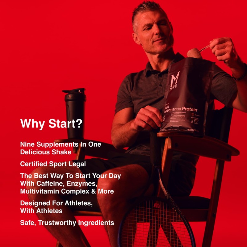 - Mdrive Start is so much more than a protein powder; it combines nine different supplements into one simplified scoop, that's why we call it a sports nutrition protein performance shake