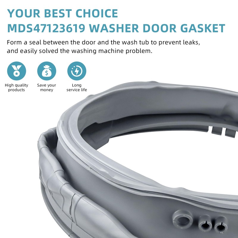 - 【High Quality Washer Gasket Door Boot Replacement】: MDS47123619 washer door gasket forms a seal between the door and the wash tub, keeps your washer working well and effectively avoids leaks! MDS47123619 is made of corrosion-resistant silicone and has the characteristics of wear-resistant, long service life and strong flexibility