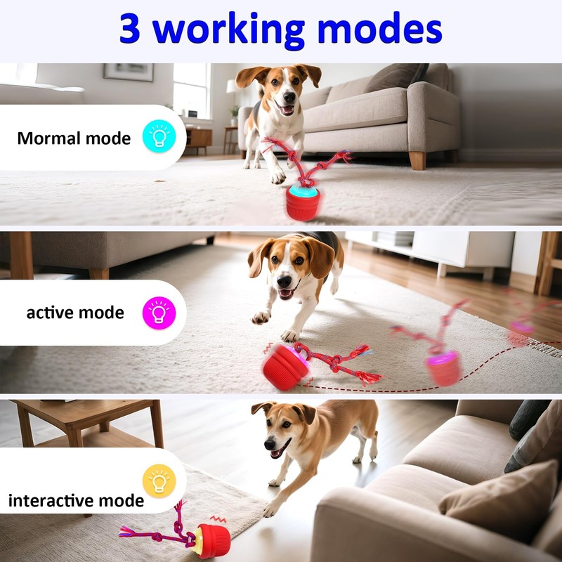 - 【 Fun Toy 】- Regarding this interactive dog ball, it combines the rolling of a motorized ball with the action of whipping a rope, stimulating your dog's natural chasing instinct and keeping them entertained. Suitable for puppies and medium to small-sized dogs, this fun toy brings richness and mental stimulation to prevent boredom, making it a must-have for busy pet parents