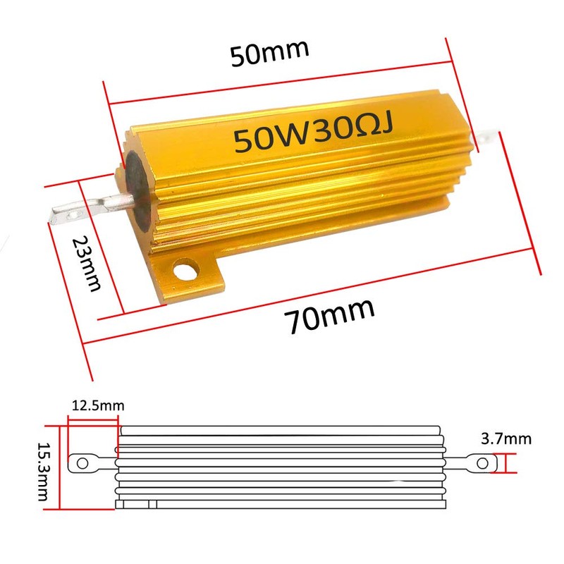 Mdurian 2 x 50 W 30 Ohm 5% Aluminium Casing Resistance Load Resistors Tap Wirewound Aluminium Housing Wirewound Resistor Gold