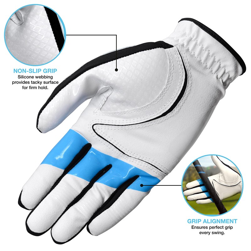 - Revolutionary Grip Alignment Design – Placing the club grip along the blue silicone area ensures the club is positioned perfectly in your hand. The non-slip silicone palm and finger application provides unrivalled grip and performance.