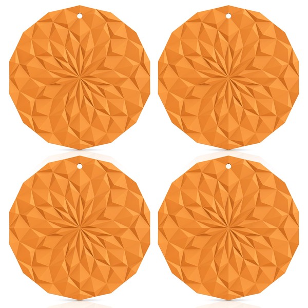 ME.FAN Silicone Trivet Mats - 4 Pack Pot Holders - 7.4'' Thickened Hot Pads for Hot pots, Pans and Dishes, Heat Resistant Silicone Trivet for Table and Counter Top Orange