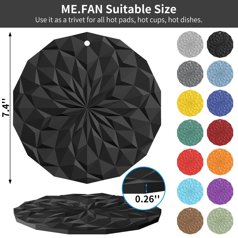 - Multi Function Mats: The soft and flexible silicone trivets,non slip and heat resistant up to 480 F, can be used as a trivet to protect your countertop or kitchen table surface from all scalding dishware; The unique yet practical and durable trivets are also suitable for kitchen mats, table mats, bowl mats, dish mats and pitcher coasters