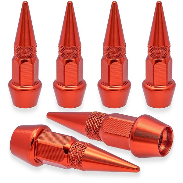 MEAJOO 6PCS Spiked Style Tire Valve Stem Caps, Universal Aluminium Alloy Dustproof Tire Valve Stem Covers for Cars, SUV, Trucks, Bikes, Motorcycles, Bicycles(45MM & Orange)