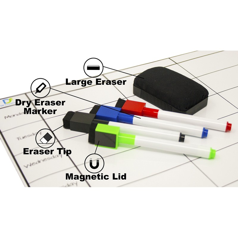 - ✅ SMART PLANNING HABITS -If you looking for a way to record your daily meals or activities? Then this is the whiteboard, it is the perfect visual tool for planning ahead. Included are 4 dry erase markers and a big eraser to clean larger areas