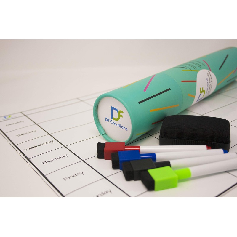 Meal Planner Whiteboard by DF Creations - Magnetic Weekly White Board for Fridge - Calender for Menu Plan - Board Task - Kids Activities - Study - Family Schedules 4 Dry Erase Markers and Large Eraser