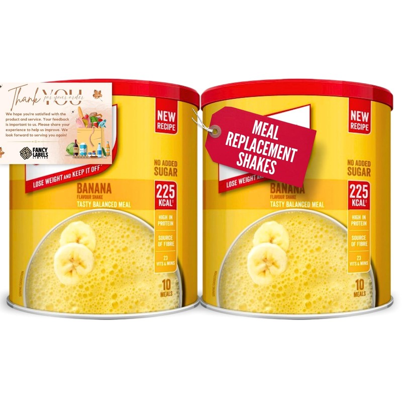 - Includes two full-size 365g tubs of Banana Meal Replacement Shake Powder, giving you a total of 20 meal servings—perfect for stocking up or staying consistent with your meal plan. Whether you're managing your weight, maintaining your nutrition on the go, or simply looking for a quick and tasty meal alternative, this bundle has you covered.