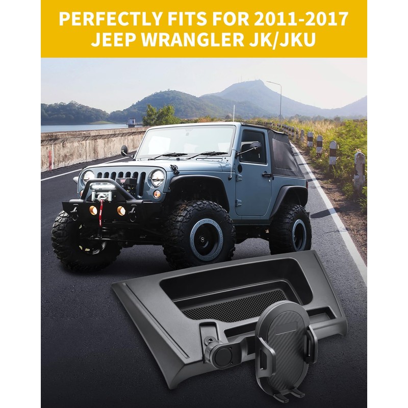 - 【Fitment】MEALAM phone mount with storage tray are designed for 2011 2012 2013 2014 2015 2016 2017 jeep wrangler JK/JKU 2 door & 4 door unlimited ( sports, sahara, freedom & rubicon), please make sure the phone mounts is compatible with your jeep version before purchasing.
