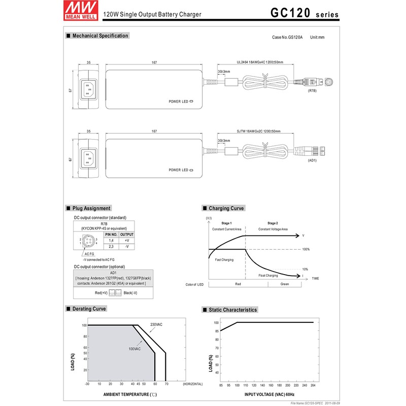 MEAN WELL GC120A12-AD1 13.6V 7.5A 102W Single Output Battery Charger Green Charger