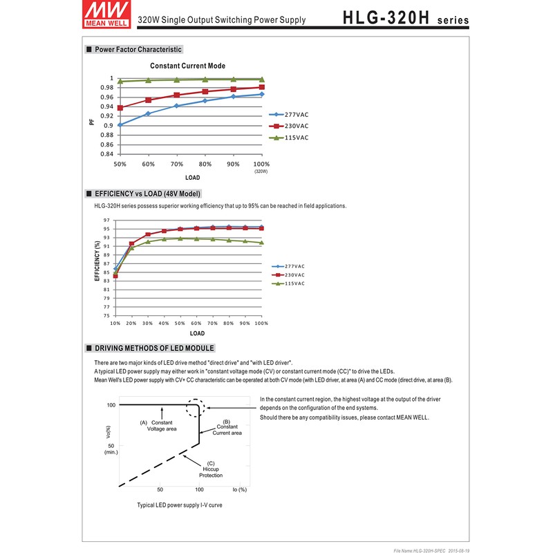 MEAN WELL HLG-320H-20A 320 W Single Output 15 A 20 Vdc Output Max IP65 Switching Power Supply - 1 item(s)