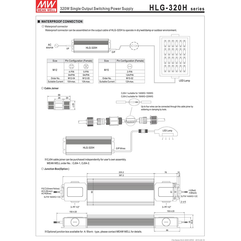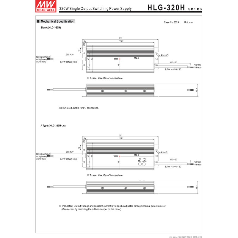 C-Type: Terminal block for I/O connection (HLG-320H only) Blank-Type: IP67 rated. Cable for I/O connection (HLG-320H only)
