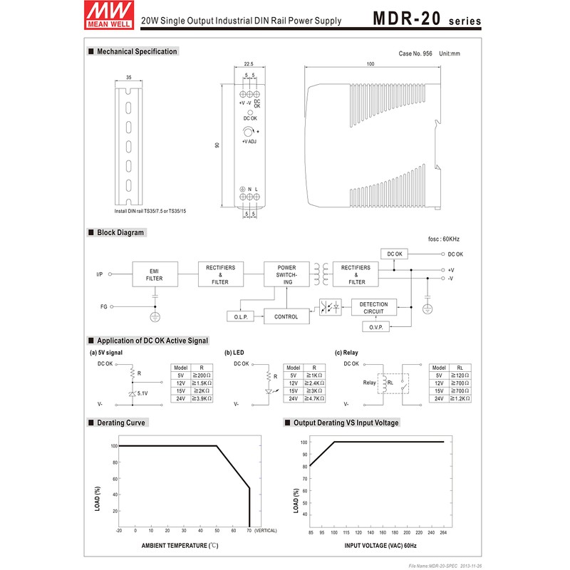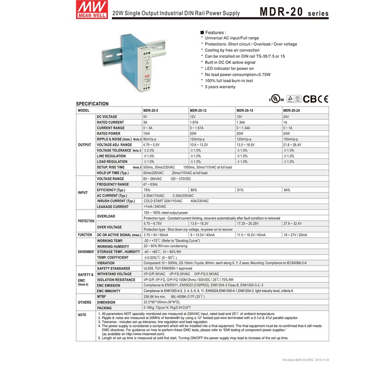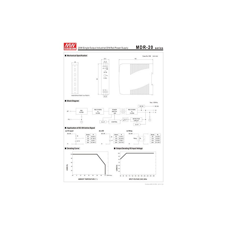 Mean Well Original MDR-20-5 Single Output Industrial DIN Rail Power Supply 5V 3A 15W