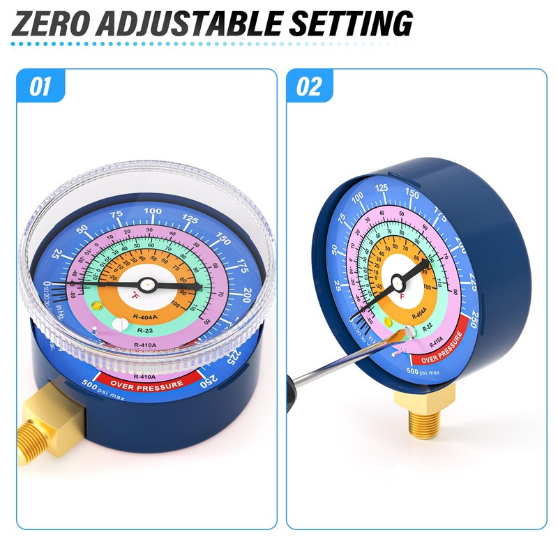 • 【Maximum Range】30 in HG to 250Psi, Compatible with R410A, R404A, R22.