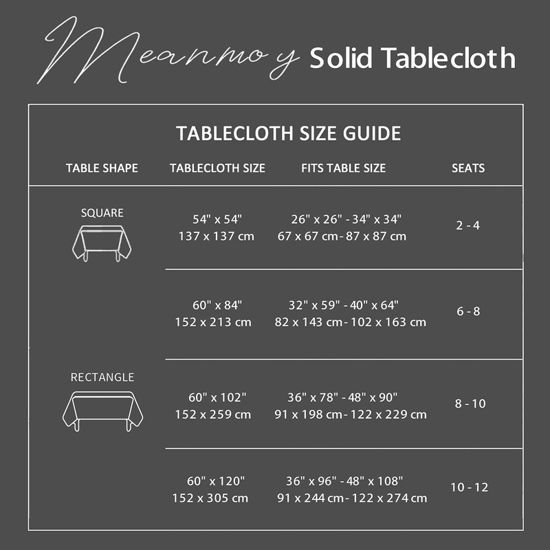 - TOSS IN THE WASHING MACHINE FOR A QUICK CLEAN: Our easy to care tablecloths are machine washable, double stitch, have seamless construction, and are sturdy material designed to withstand repeated use and frequent laundering. Better durability and easier to care for than linen or cotton
