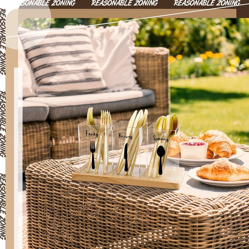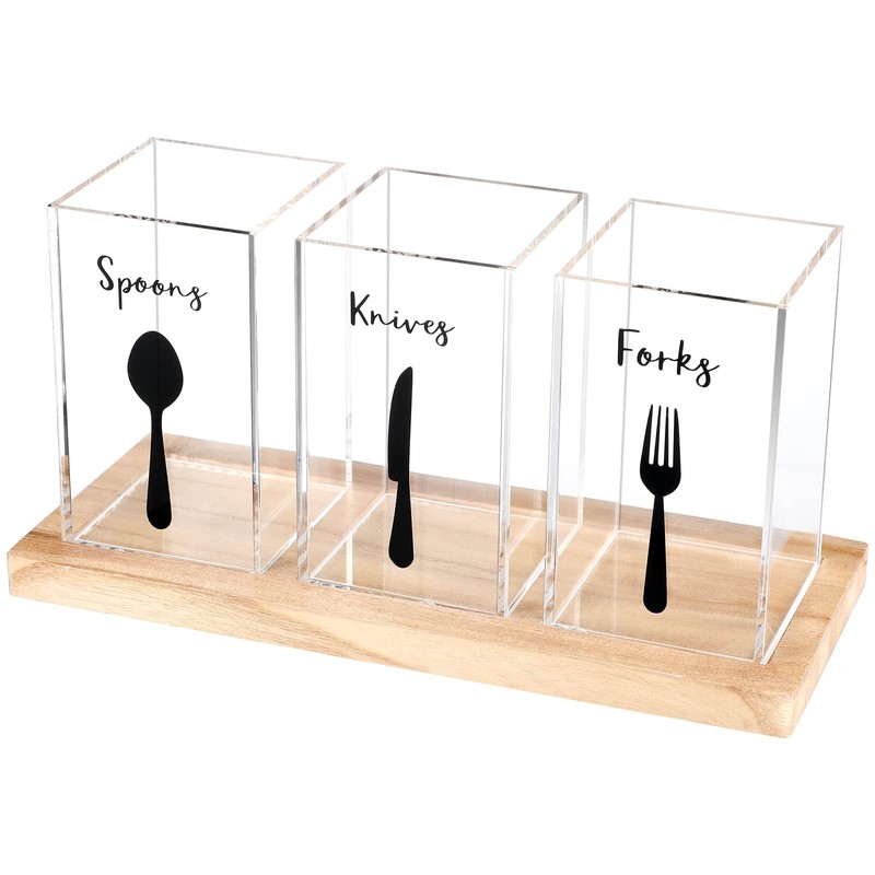 - Sturdy Material: this cutlery holder is made of acrylic material and the tray is made of solid wood, which are safe and reliable to use, sturdy and not easy to break or deform, suitable long lasting use