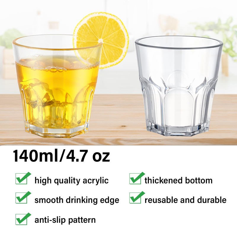 - Appropriate Size: acrylic drinking cups measure about 6.8 cm/ 2.68 inches in diameter and 7.2 cm/ 2.83 inches in height, and the capacity is about 140 ml/ 4.7 oz, which is ideal for your favorite cold drinks, such as juice, lemonade, iced coffee, wine, and more; Note: hand wash recommended