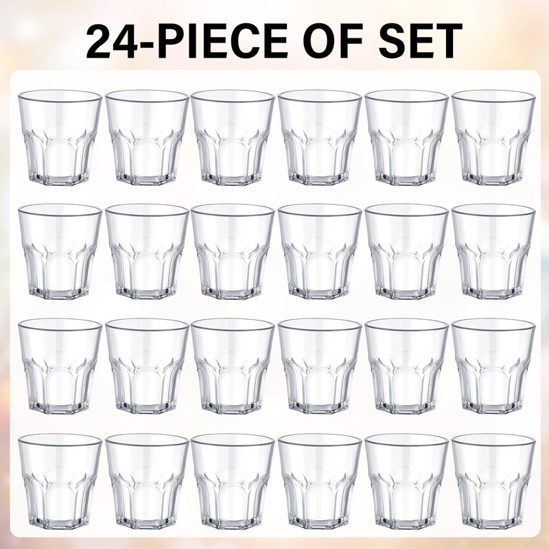 Meanplan Set of 24 Acrylic Drinking Glasses Reusable Water Drinking Cups Stackable Shatterproof Unbreakable Drinking Tumblers Water Glasses for Juice Beverages Drinks Coffee (Clear, 4.7oz)