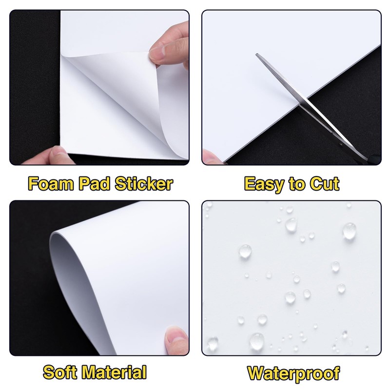 - Thin Adhesive Foam:white foam sheets,One Sided Adhesive 1mm thick, suitable for cutting, strong texture .The porosity of the material is very small to ensure the quality of the material.